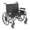 The Sentra Extra Wide Heavy Duty Wheelchair from Drive Medical boasts a 700 pound weight capacity, made possible through the use of reinforced steel gussets, reinforced nylon upholstery, reinforced side frame, extra heavy duty front forks and casters, and dual cross bars. The stylish powder coated silver vein steel frame and steel mag wheels add a touch of elegance to this bariatric wheelchair. This wheelchair is also dual axle, providing support for hemi positioning when necessary. Available in various arm styles and seat widths, the right wheelchair exists for you.